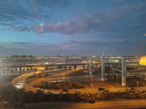 午前5時ごろになるとDさんも起きてきたので、コーヒーを入れてニュースを見ながら、LAXの滑走路を望むホテルの窓辺でひと息。せっかくだから、と2人で朝散歩に巨大なLAX空港のターミナルをぐるりと一周回りました。僕はLAX周辺のホテルに泊まるのは初めてでしたが、Dさんは仕事でよく来ているらしく、やたらと詳しく自信満々な彼がちょっと面白かったです。