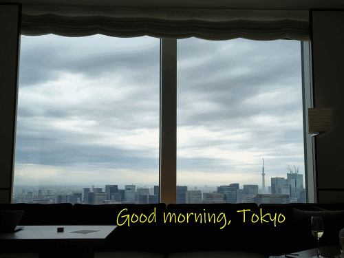 新しい朝がやってきました。宿泊しているホテルはビルの高層階にあり、ベッドからそのまま東京の空を眺めることができます。チェックインカウンターは最上階の51階にあり、客室は47階から50階に配置。部屋のカテゴリーによって「東京タワービュー」「皇居&スカイツリービュー」「赤坂方面ビュー」「新橋駅ビュー」と分かれています。