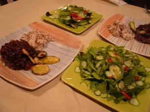 付け合せに夏野菜のオーブン焼き入りサラダを作ってみました