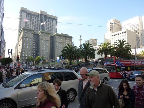 SFダウンタウンの中心地 ユニオンスクエアーでは車 人でかなりごった返していました