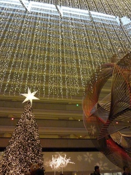 吹き抜けになったホールの部分から 雨だれのようにデコレーションがあるのが一番大きな飾りで