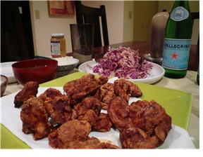 メインにチキンを焼きまして 付け合せはゴボウと人参 シラタキのサラダにしてみました