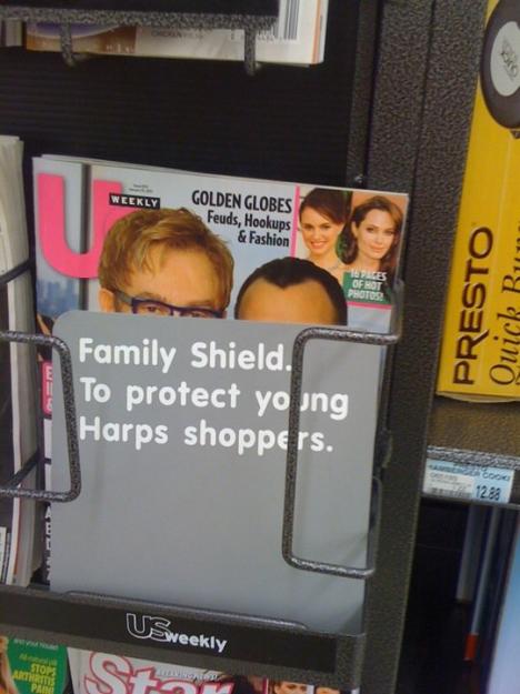 カバーがかけられ子供の目に触れられないような処置が施されたということです”家族保護シールド。このお店の若い買い物客を守る為” なんてご丁寧に書いてあるんですよ