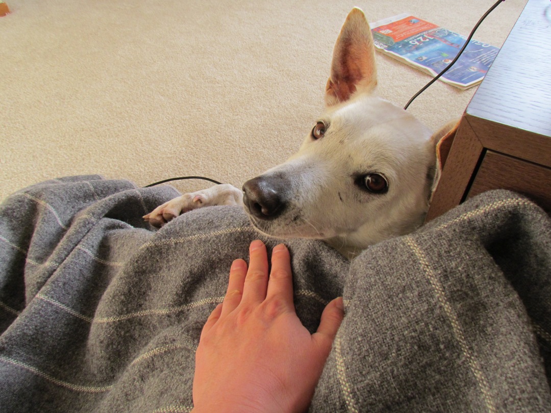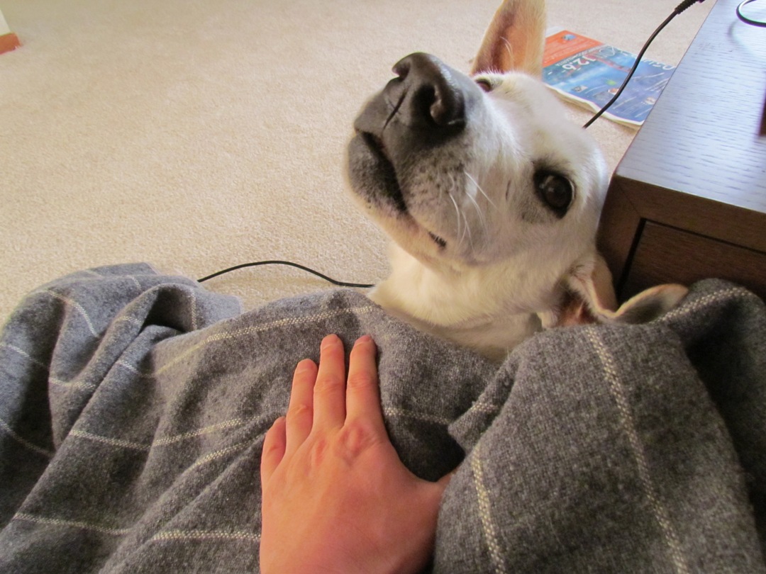 怖がるくせに 大変気になるらしく いつもは食事のあと僕達の周りで寝そべっているのに