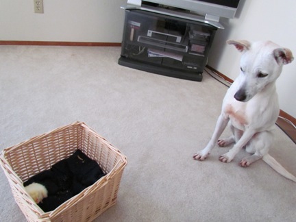 怖がるくせに 大変気になるらしく いつもは食事のあと僕達の周りで寝そべっているのに