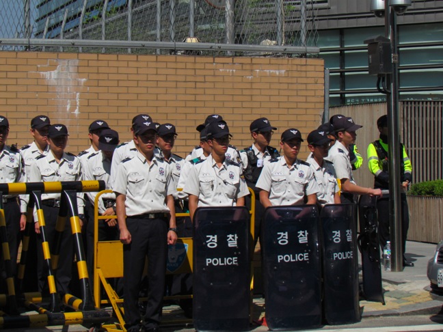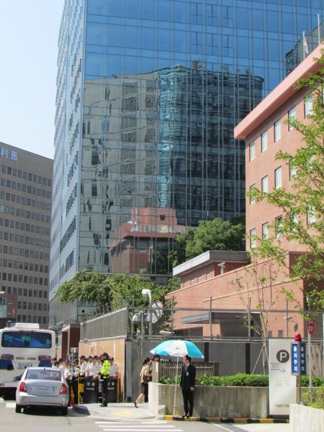 この警備はこの警官↑が背にしている建物への警備なんだとわかりました