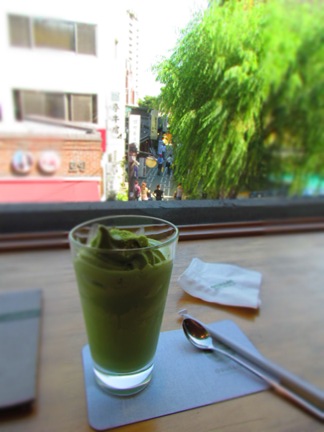 暑いこの日にぴったりのものがあったので頼んでみました 抹茶味のソフトクリームと抹茶と氷を砕いた飲み物