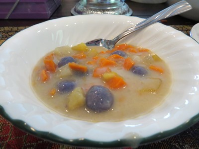 豆とライス 甘くないバナナフライ 甘いバナナのデザート そしてサラダが付いていました