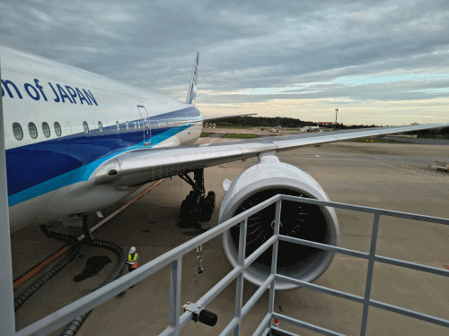 成田空港に到着してラウンジでのんびりした後、ゲートに向かいました。ちなみに一応ラウンジのシャワーの順番待ちを入れておいたのですが、結局あと7人ほどの手前で断念しなくてはいけない状態でした。ここのところ、成田にしても羽田にしても、このANAのラウンジでは待ちの人が多すぎてほぼ100%の割合でシャワーを使えない状態ですから、ANAさん、これは少し改善対策をした方がいいかもしれませんね。