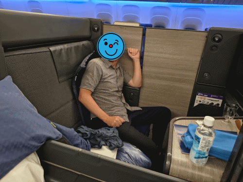 さて、いよいよ飛行機に乗り込みました。今回はサンフランシスコまでの直行便を利用し、座席も分不相応に背伸びしてANAさんのビジネスクラス「The Room」を選びました。普通のビジネスクラスも十分快適ですが、この個室になりプライバシーが確保できる「The Room」は格別です。今のところANAではこのシートは大型機のボーイング777にしか導入されておりません。