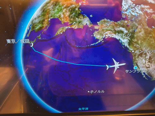 食事の後は映画でも観ようかと思ったのですが、観たいと思える作品がありませんでした。もともと映画やテレビはあまり観ないのですが、飛行機では数本は観るのに、今回はすっかり興味を失ってしまったようです。そのままベッドをフルフラットにして就寝。行きの便では1時間ほどしか眠れなかったのに、帰りはぐっすり熟睡してしまいました。