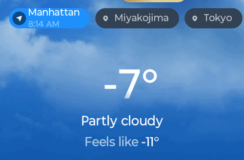 ニューヨークでの新しい朝がやって来ました。携帯を見ると外気はなんと−7℃。これは寒い!窓のそばに立つと、外気の冷気がじんわり伝わってくるほどの寒さだということがわかります。天気は快晴で風も強く、体感温度はさらに低くなりそうです。