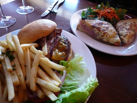 僕が手前の ベーコンチーズバーガー 彼氏Dさんは Croque-Monsieur