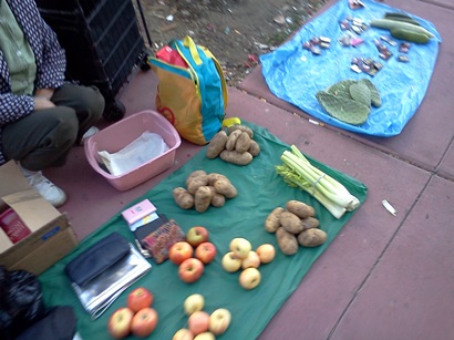 緑シートのおばさんよりもっと売れなさそうなものを広げて売っているのです!(笑)