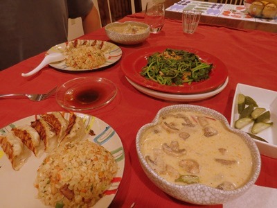 付け合わせには炒飯と餃子 それに空芯菜のニンニク炒め