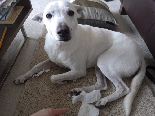 むさぼるように漁る犬がうちにいるようで ナプキンがリビングでぐちゃぐちゃになっていました(笑)
