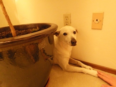 植木の裏で耳を下げ文字通りぶるぶる震えてかくれていました
