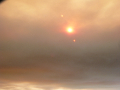 あまりの煙の多さに 太陽さえも 夕日のような色に見えていました
