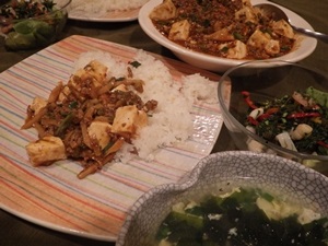 この日の夕飯は麻婆豆腐 海鮮酢の物 そしてわかめスープという