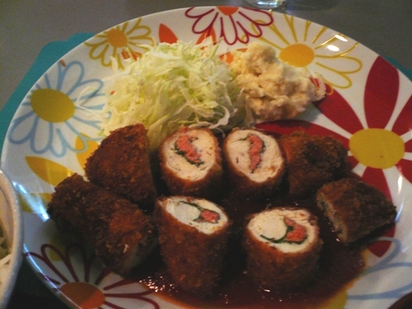 僕が頼んだのは 明太入りチキンカツで 明太子をチキンで巻いてある こんな感じのもの