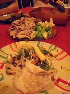 メインは豚しゃぶとさっと茹でたきのこ類とブロッコリーカリフラワー