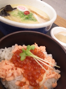 久しぶりにSan Joseの山頭火の方でラーメン サケいくら丼