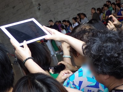 iPadで一生懸命動画撮影しているのですが どう見ても彼女が撮影しているのは前の人頭