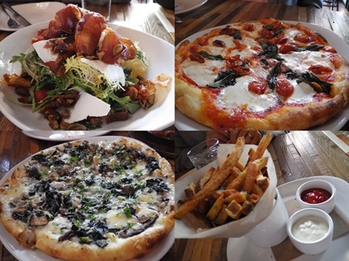 左下 ワイルドマッシュルームとケールのピザ そして右下が味付きのフライドポテト