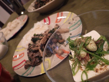 >冷奴とミョウガ&ネギって、ベストコンビネーションですね。なんだか日本の暑い夏がちょっとだけ恋しくなるな…ちょっとだけですけど。