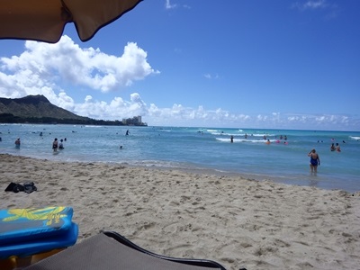 いつものロイヤルハワイアンの目の前のパラソルセットを借りました