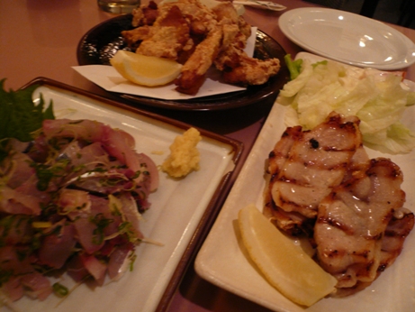 アジのたたき 豚トロ焼き 鶏唐揚げ ハマチカマ 牛タンなどなど いろいろを ビール