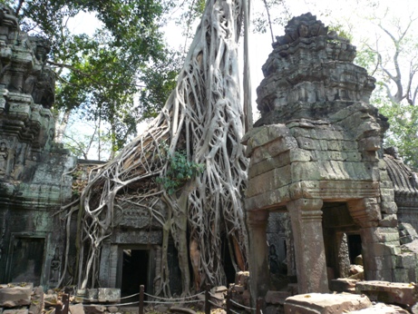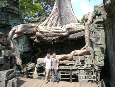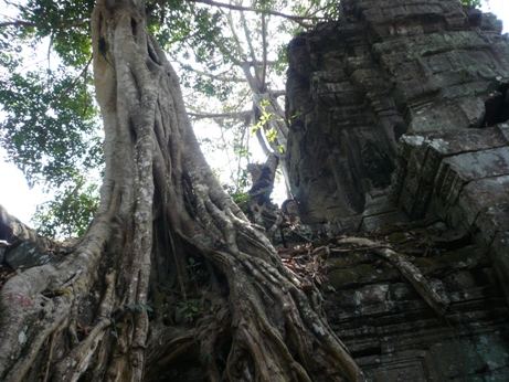 蛇のように 大きな根っこが寺院に絡みつき もう外すこともできないし