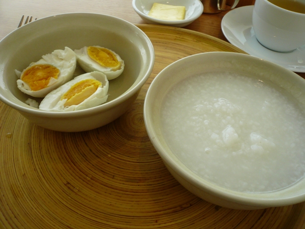今回のベトナム朝食の選択は 塩漬けアヒルの卵とおかゆ