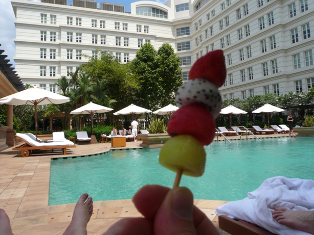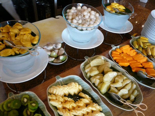 ここのレストランのフルーツチョイスも豊富で 見たこともないいろいろな果物をお腹の心配をすることなく