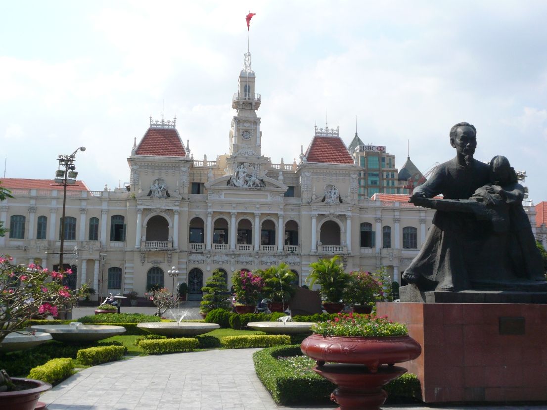 ベトナム革命の指導者 ホー・チ・ミン氏の銅像が建っています