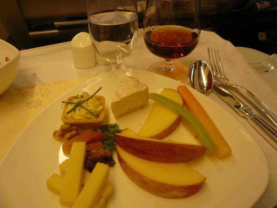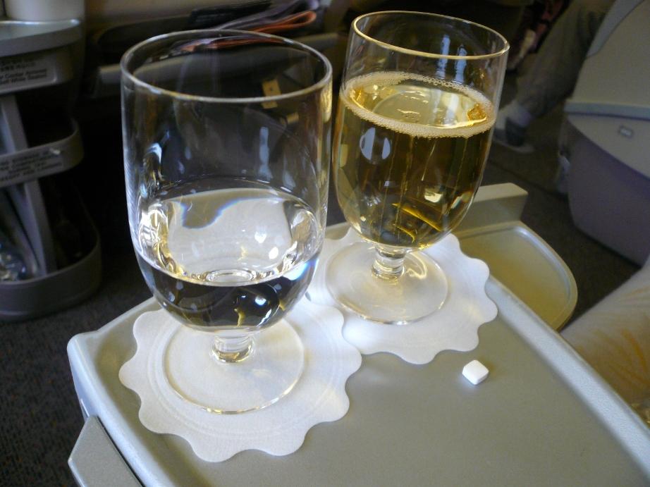飛行機が 安定したところで カクテルとアペタイザーのサービス
