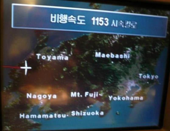 飛行機は慎重に韓国内を通り北朝鮮には一切 近づかずに