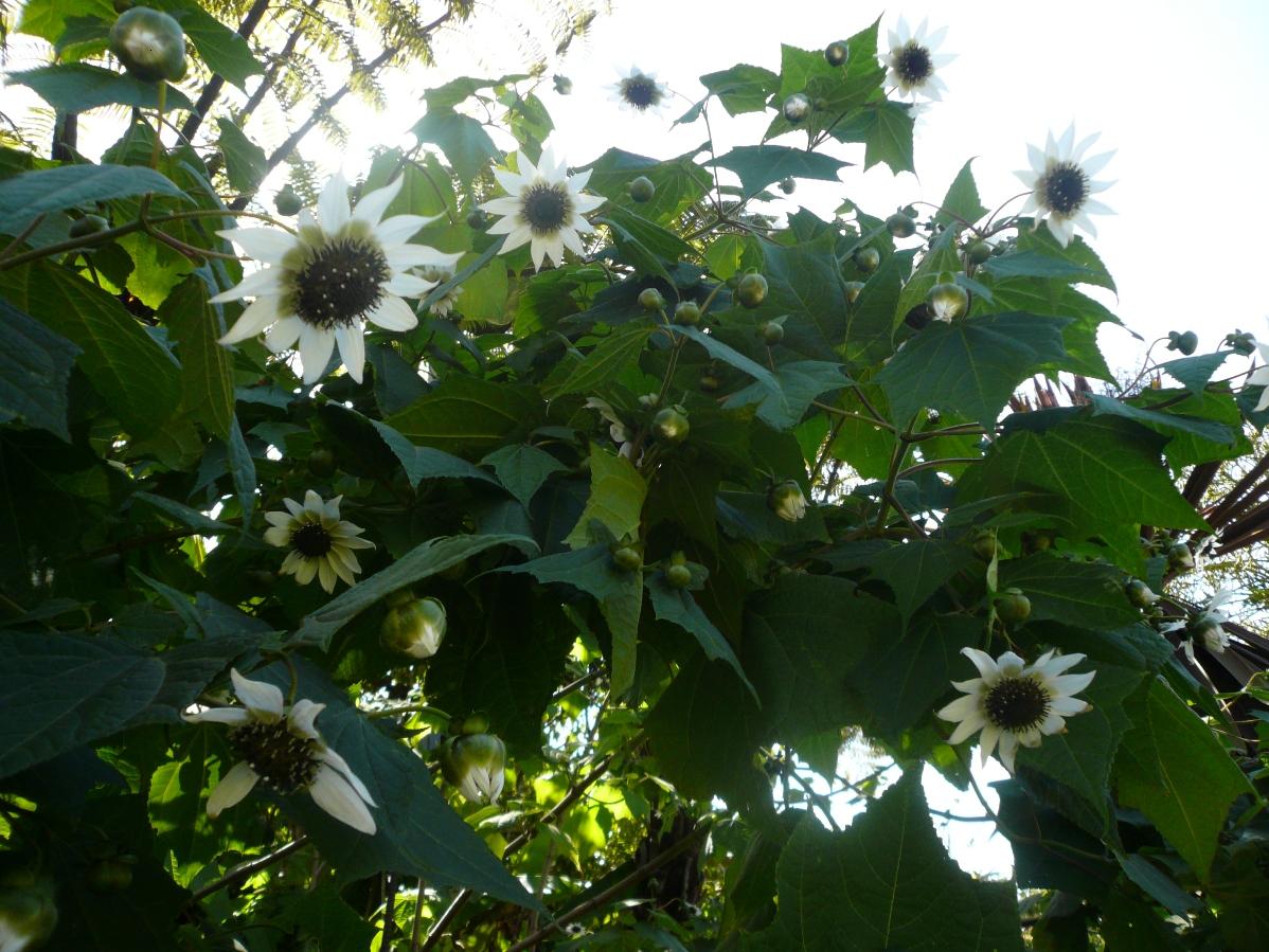 小さめの白いひまわりのようにも見える花です