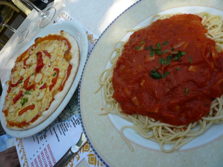 のはいったピザ(前日もPizza)食べてますけどね・・・僕は名前は忘れてしまいましたが ハムとチリペッパートマトソースのスパゲッティ