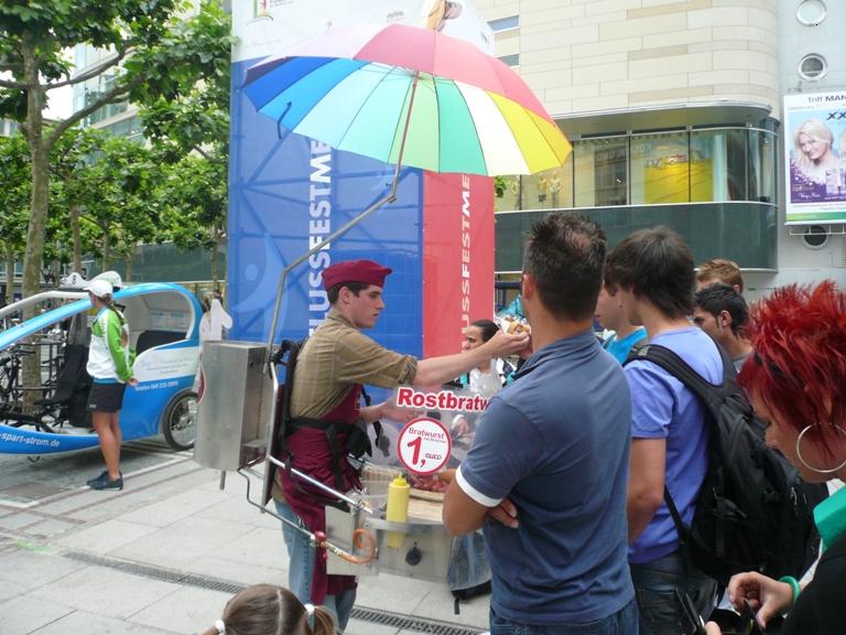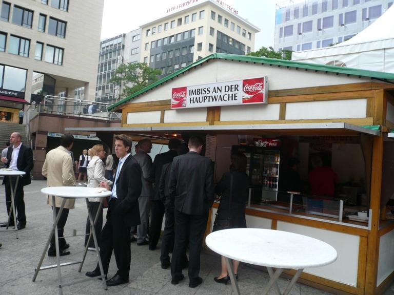 ちょうどランチタイムでしたので 本場のフランクフルトソーセージを~ ホットドックのようにしてお昼にしているビジネスマンたちがいたり~