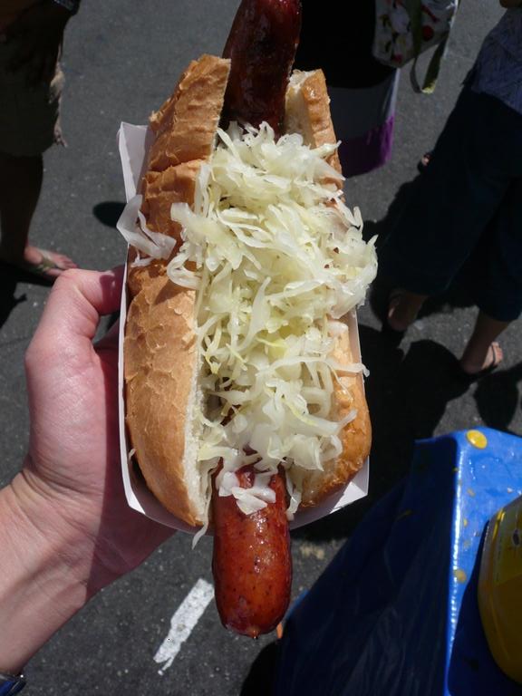 パンに 玉葱とサワークラフト(キャベツの酢漬け)などをのせることができて$6 まあまあの値段です・・・