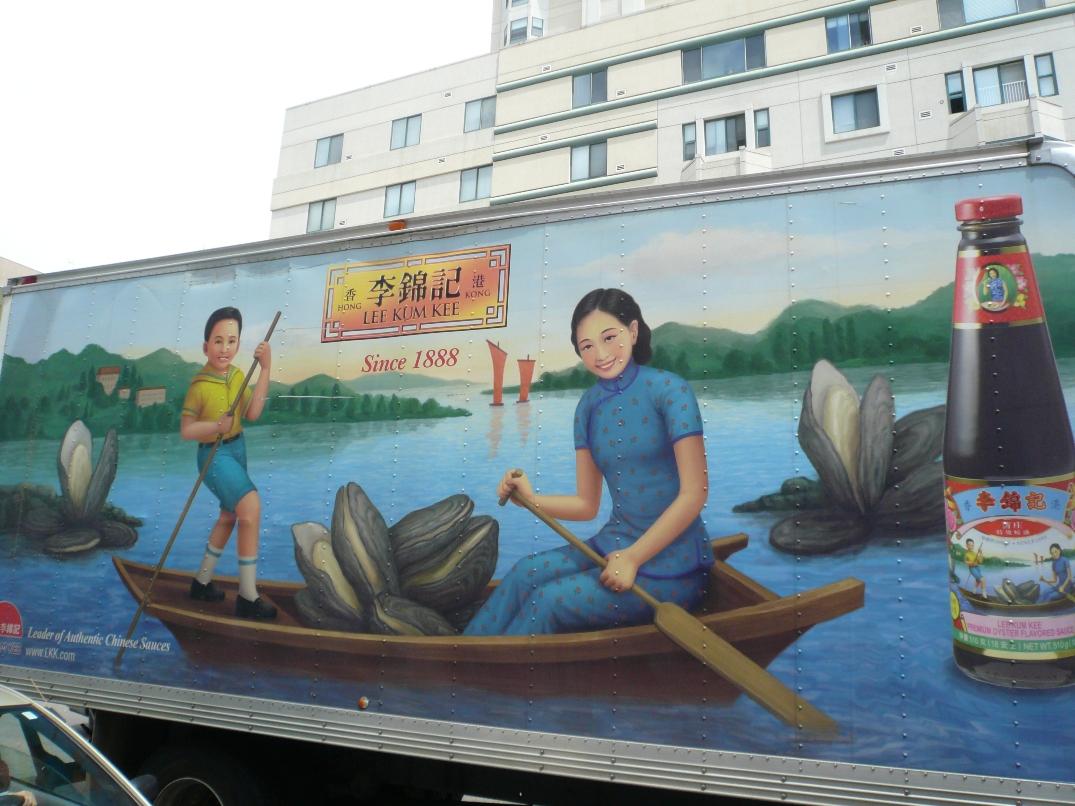 どうってことはないトラックの側面に描かれた牡蠣ソースの広告なんですが