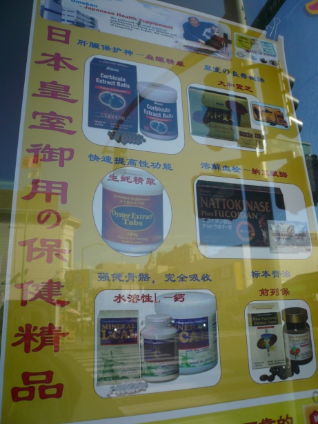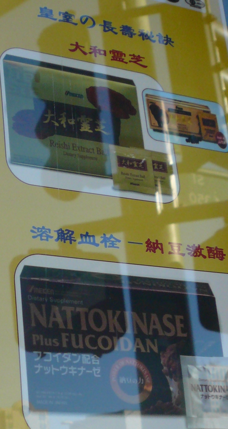 の健康食品店?みたいなものがありましてそこの窓に堂々と こんな文字が並んでいました・・・・