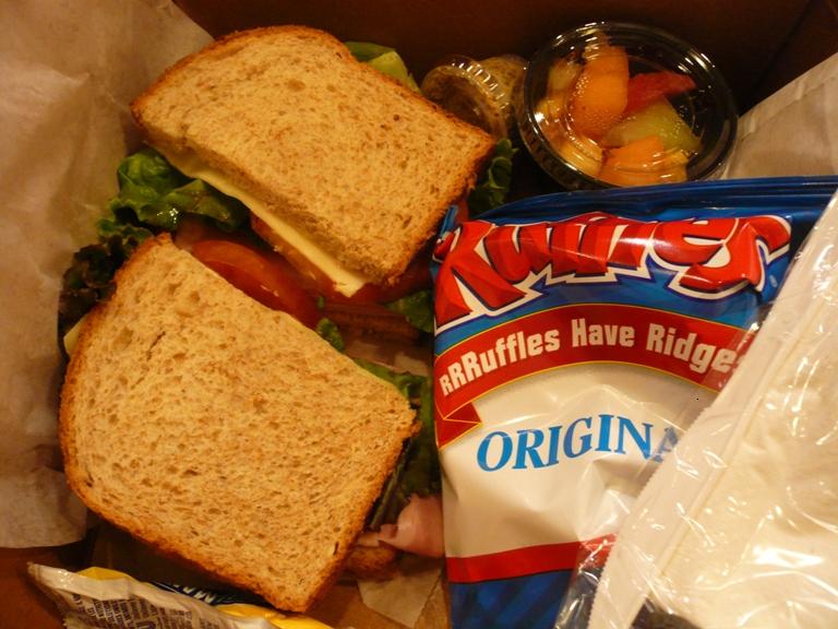 お昼にはこんな感じのランチボックスが振舞われますが・・・あまり美味しくないです このランチにも欠食児童たちが出現