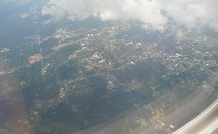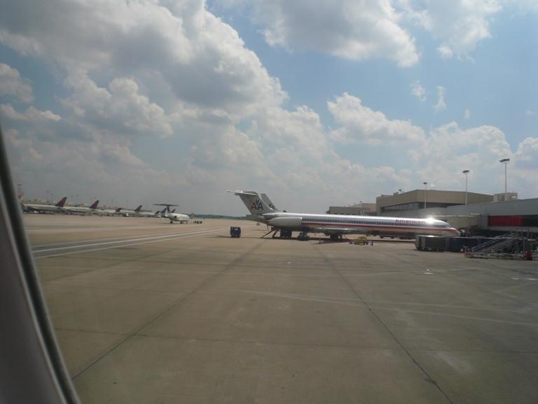 飛行機は定時にアトランタ空港を飛び立ちました