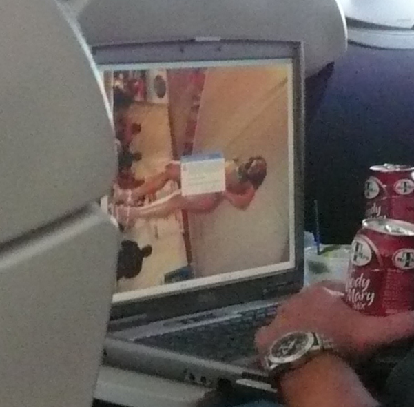 それにしても飛行機の中で裸体の画像はだめでしょう!