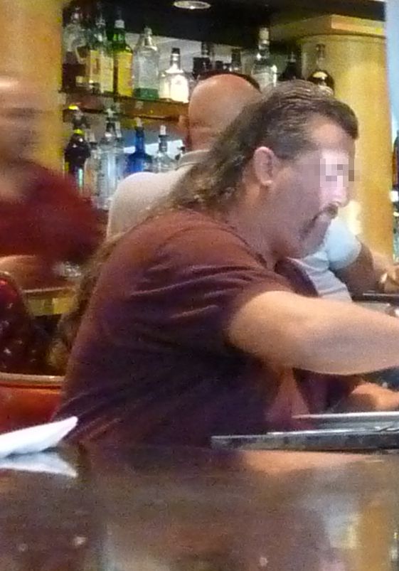 左端にいる臙脂のシャツのおじさんなんですけど・・・