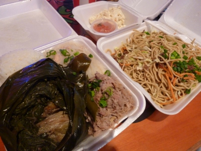 手前の黒っぽいのはLau Lau Pork そのとなりがKalua Pork