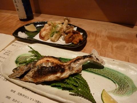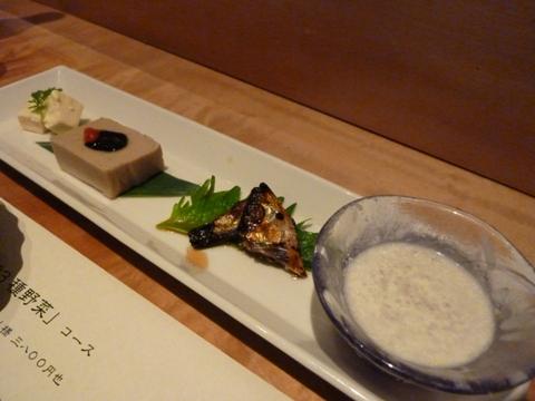 右は チーズの味噌漬け ゴマ豆腐 ままかり 牛蒡の豆乳摺り