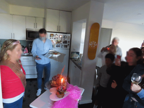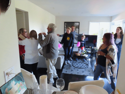 シナリオとしては、誕生日ガールは旦那さんに誕生日のカクテルと夕飯に誘われています。そこには彼女の友人2人も招待したので、レストランに行く途中で友人をピックアップするという設定になっていました。そして彼女がその友人宅を訪れると、前もって集まっていた人間がサプライズをさせるという感じの流れになっていました。今回は遠方から彼女の両親も参加していましたね!